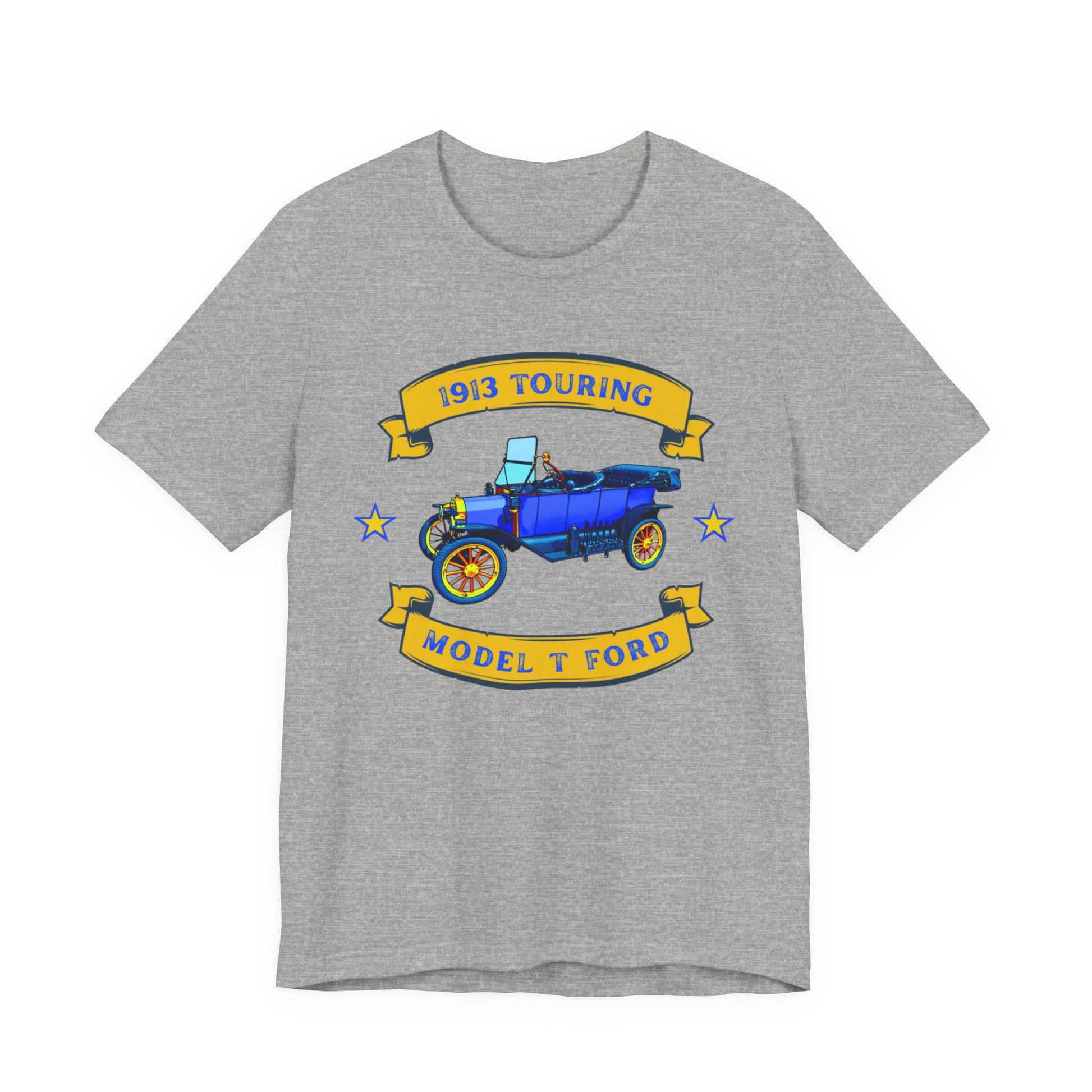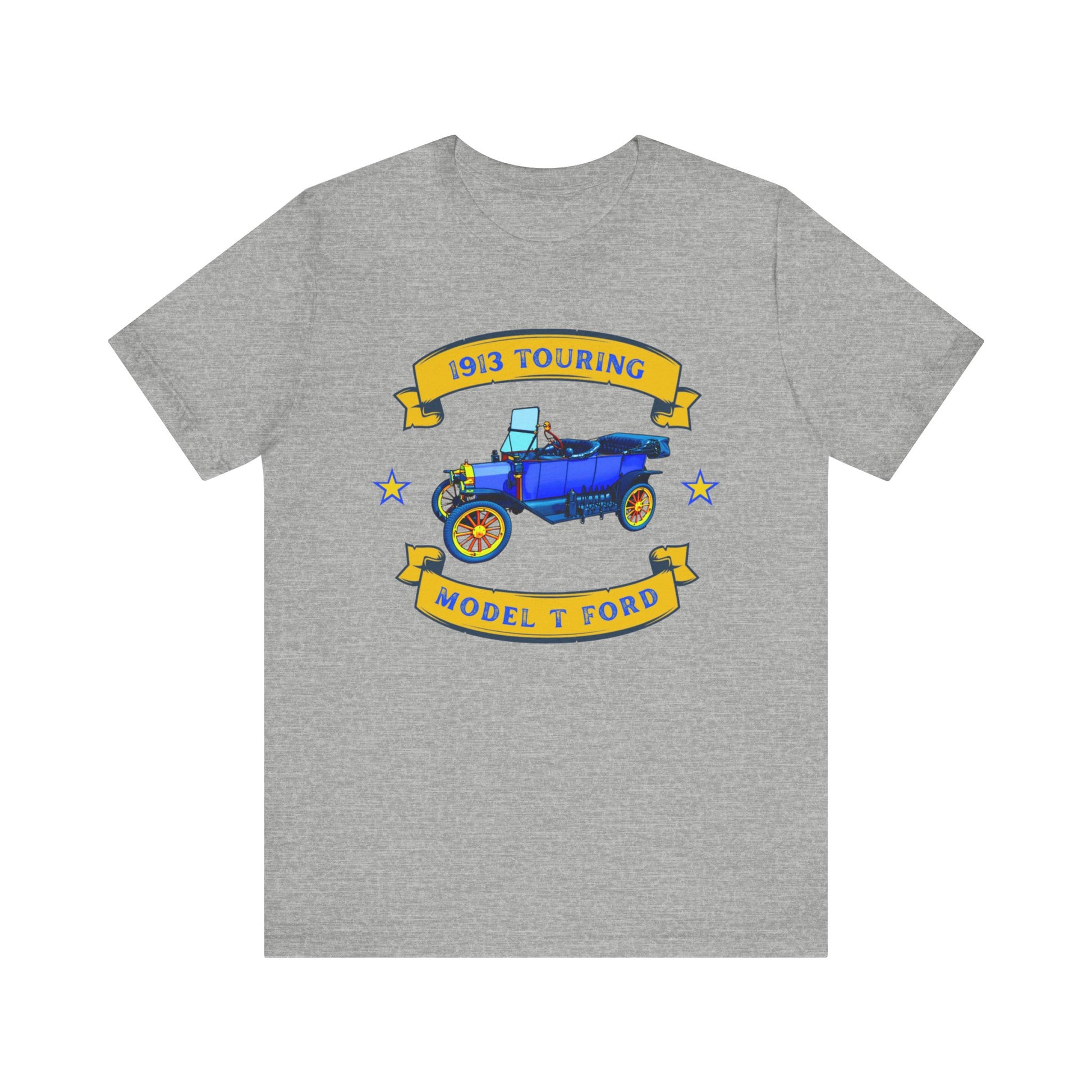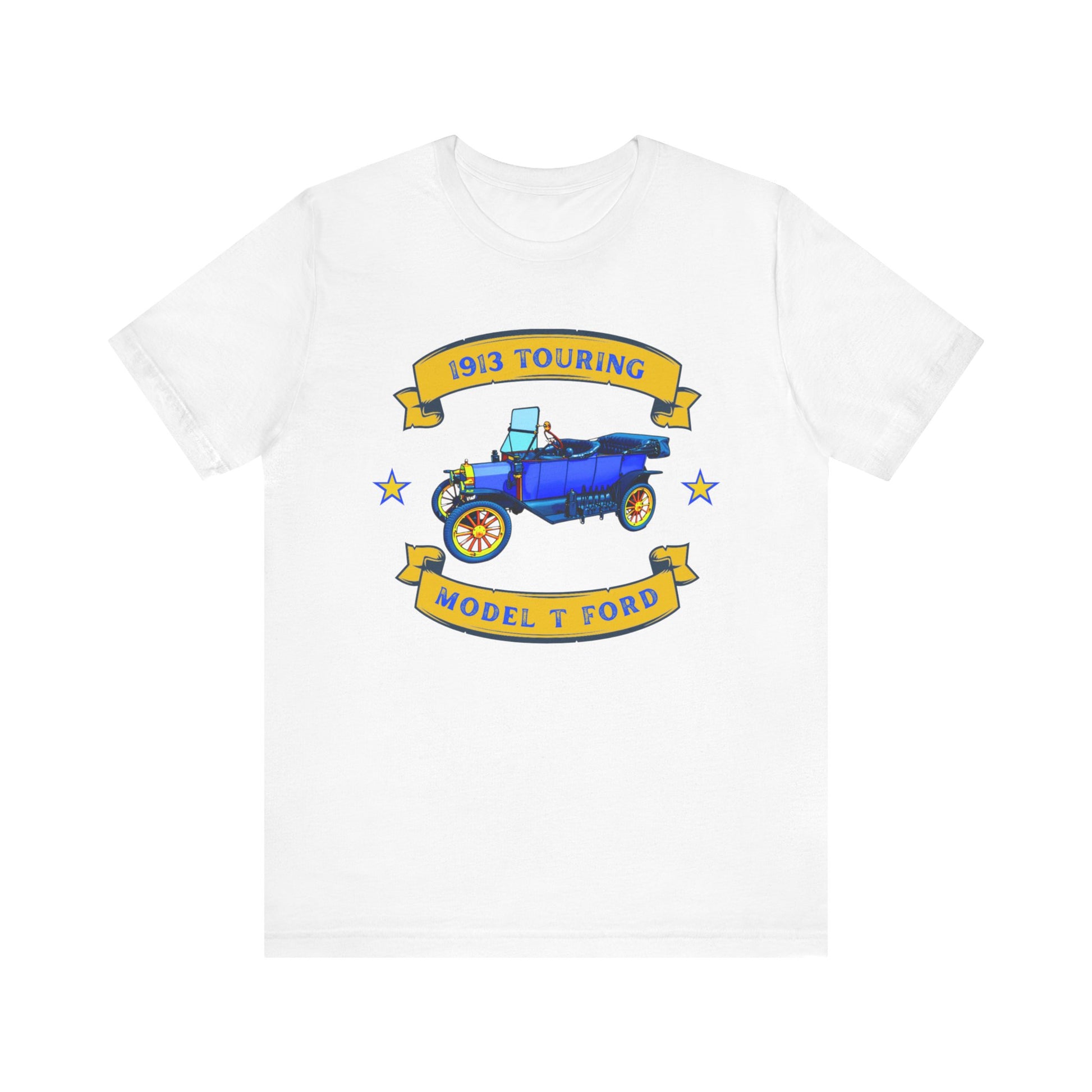 Introducing a comfortable and stylish Unisex Jersey Short Sleeve Tee that exudes a laid-back charm. This tee features a beautiful vintage design of the iconic 1913 Touring Model T Ford, capturing the essence of classic Americana. Perfect for car enthusiasts or anyone who appreciates nostalgic aesthetics, this tee adds a touch of personality to casual outfits. Whether you're hitting the road, relaxing at home, or attending a summer barbecue, this shirt is ideal for all your everyday adventures. It’s perfect for birthdays, Father’s Day, or even as a unique gift for the classic car lover in your life. Wear it and feel the spirit of freedom and adventure!