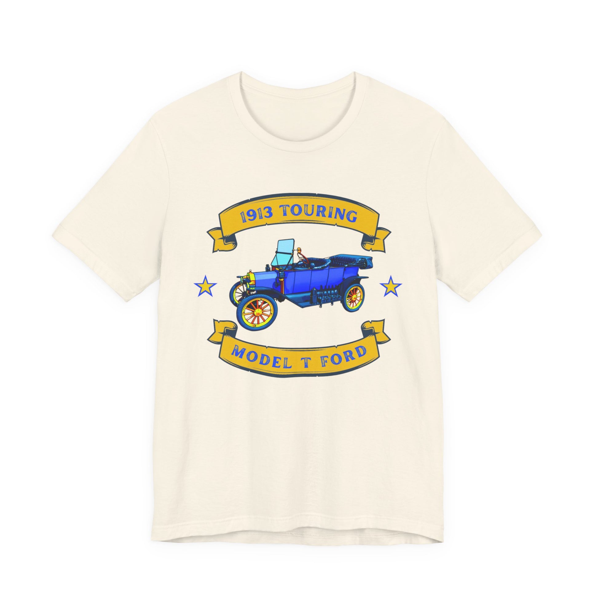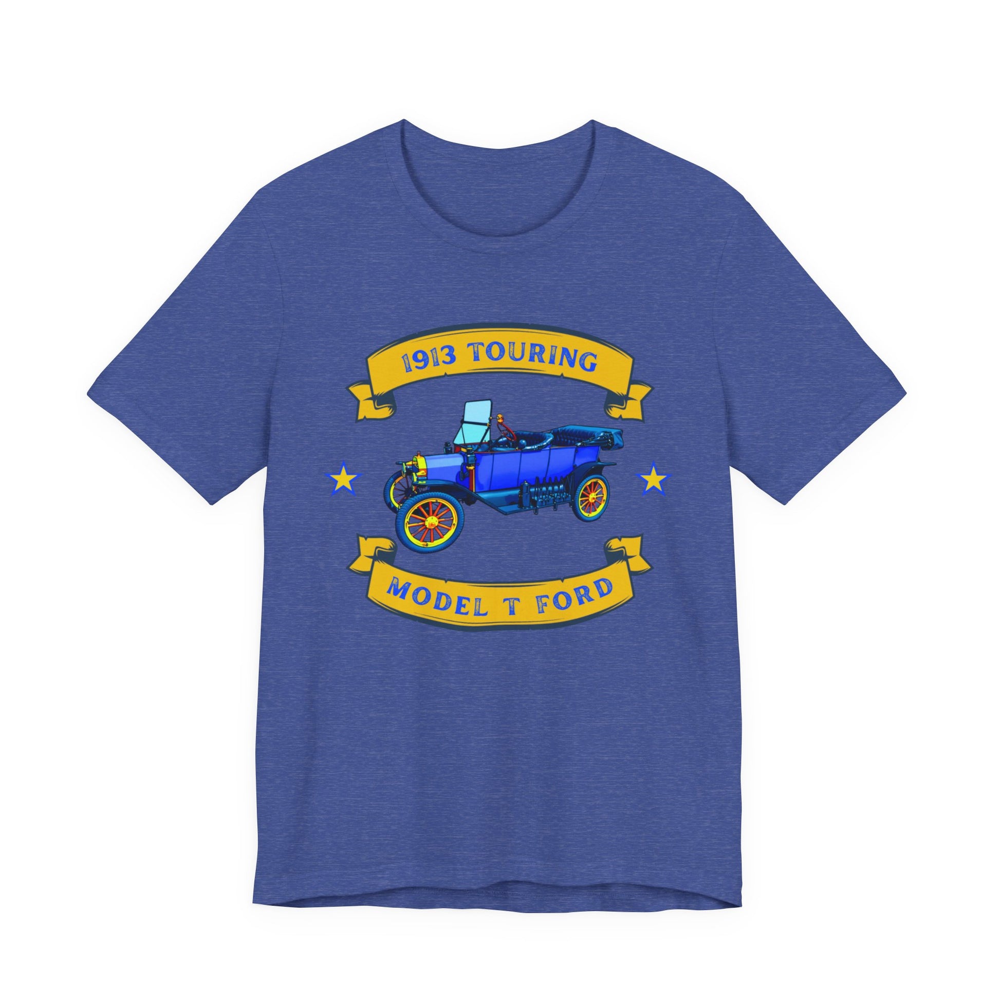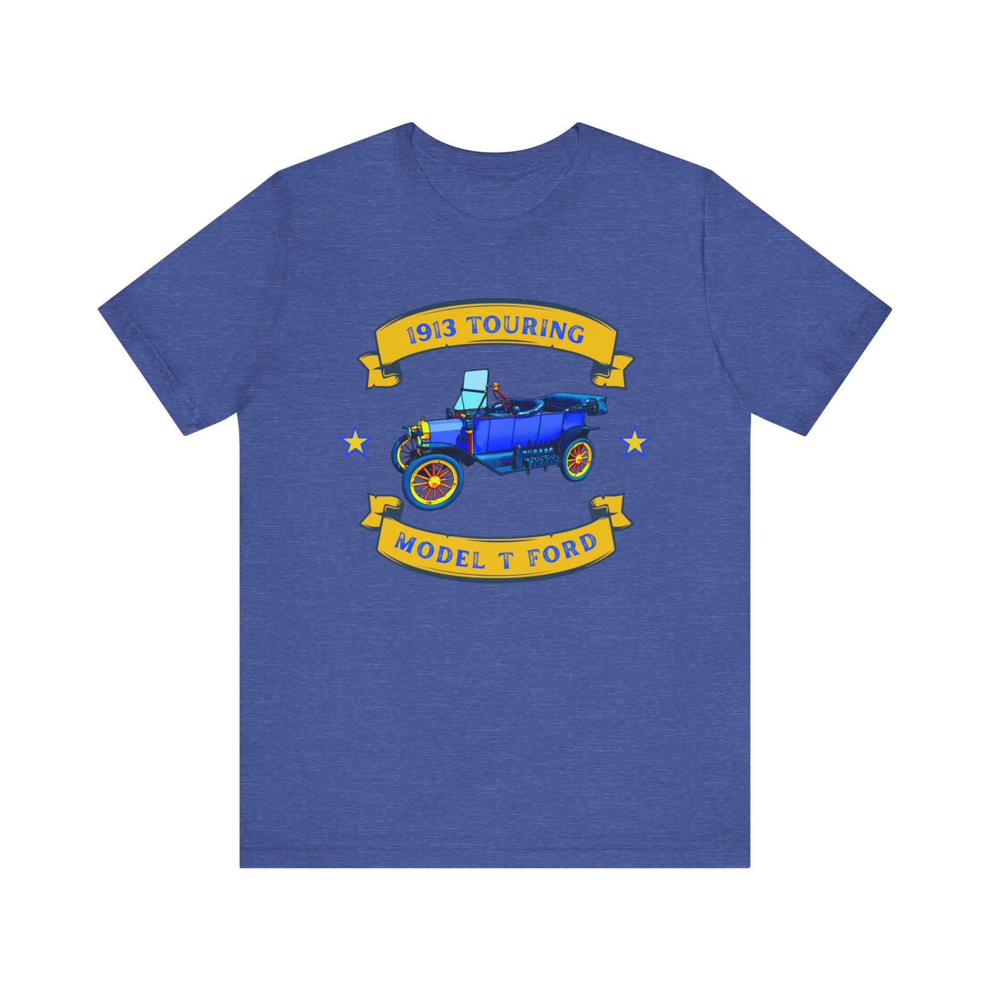 Introducing a comfortable and stylish Unisex Jersey Short Sleeve Tee that exudes a laid-back charm. This tee features a beautiful vintage design of the iconic 1913 Touring Model T Ford, capturing the essence of classic Americana. Perfect for car enthusiasts or anyone who appreciates nostalgic aesthetics, this tee adds a touch of personality to casual outfits. Whether you're hitting the road, relaxing at home, or attending a summer barbecue, this shirt is ideal for all your everyday adventures. It’s perfect for birthdays, Father’s Day, or even as a unique gift for the classic car lover in your life. Wear it and feel the spirit of freedom and adventure!