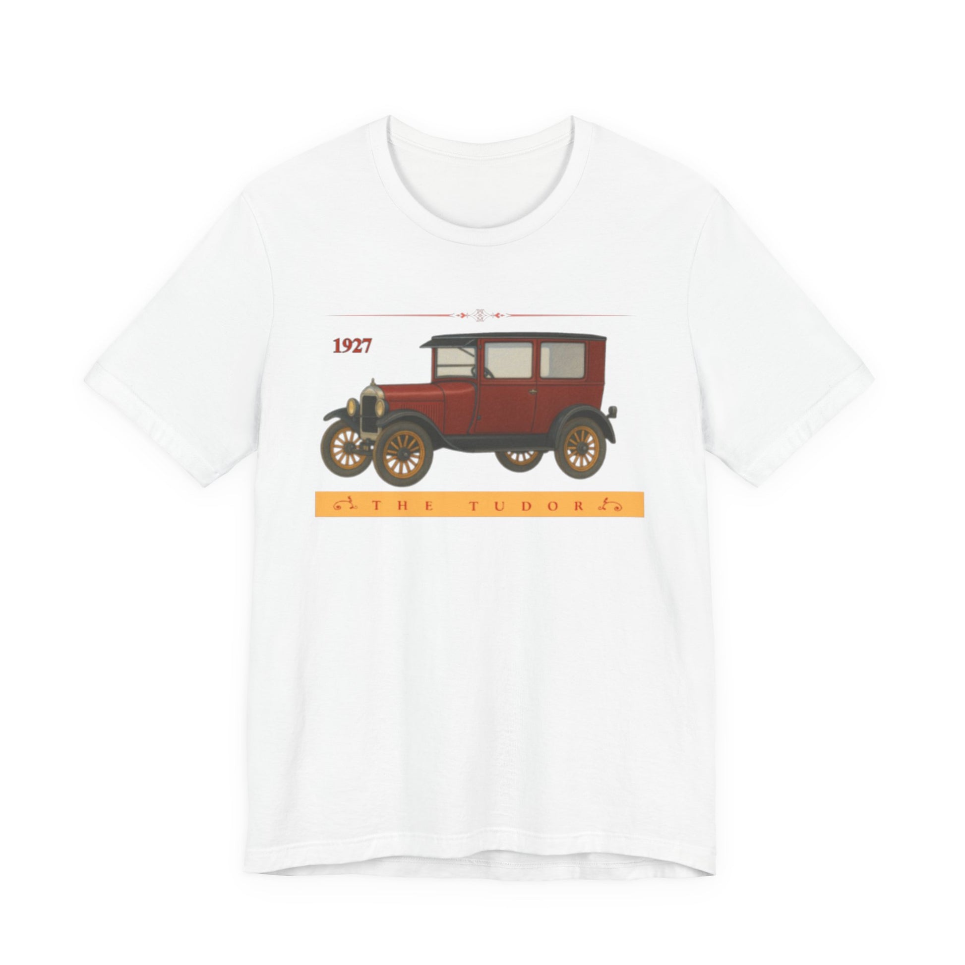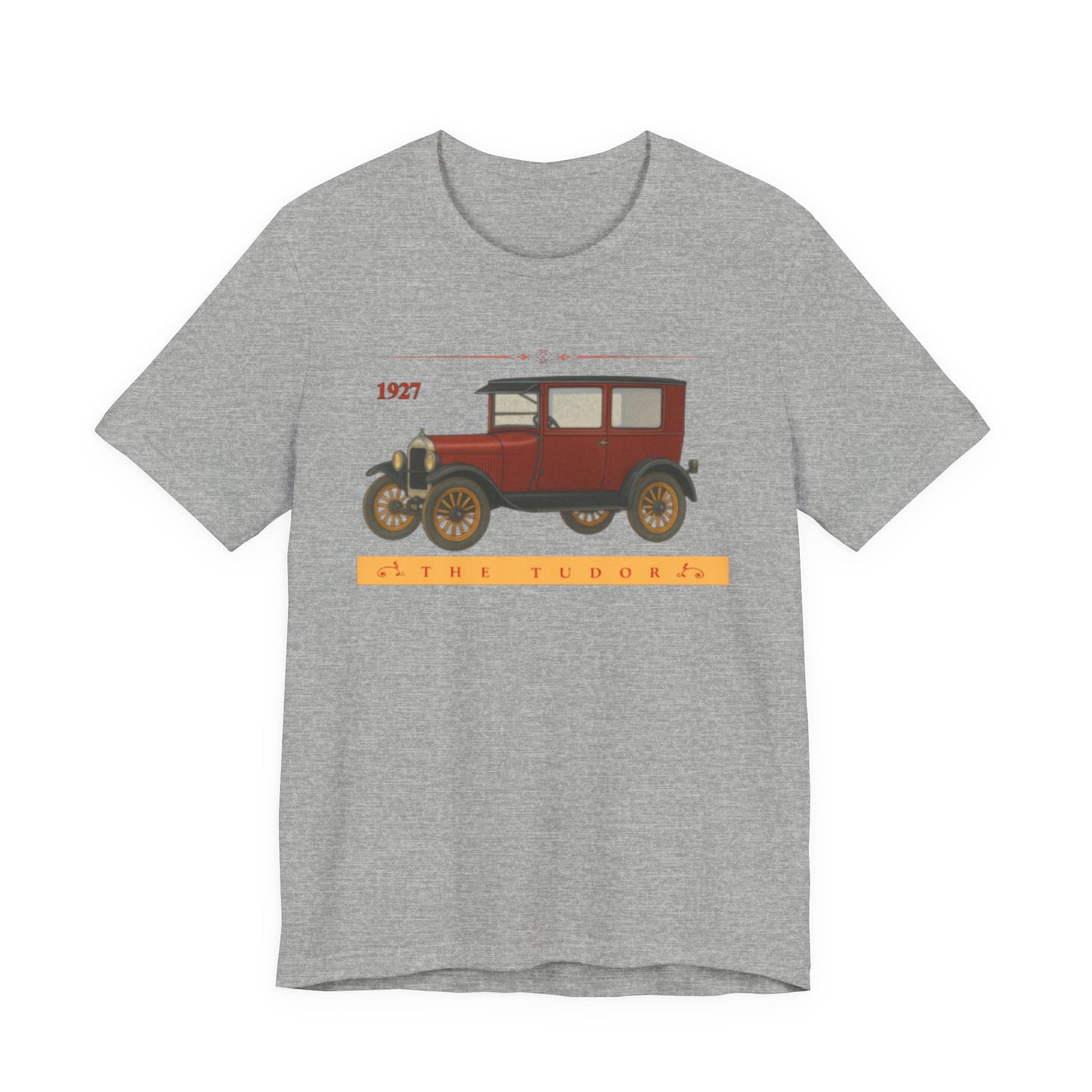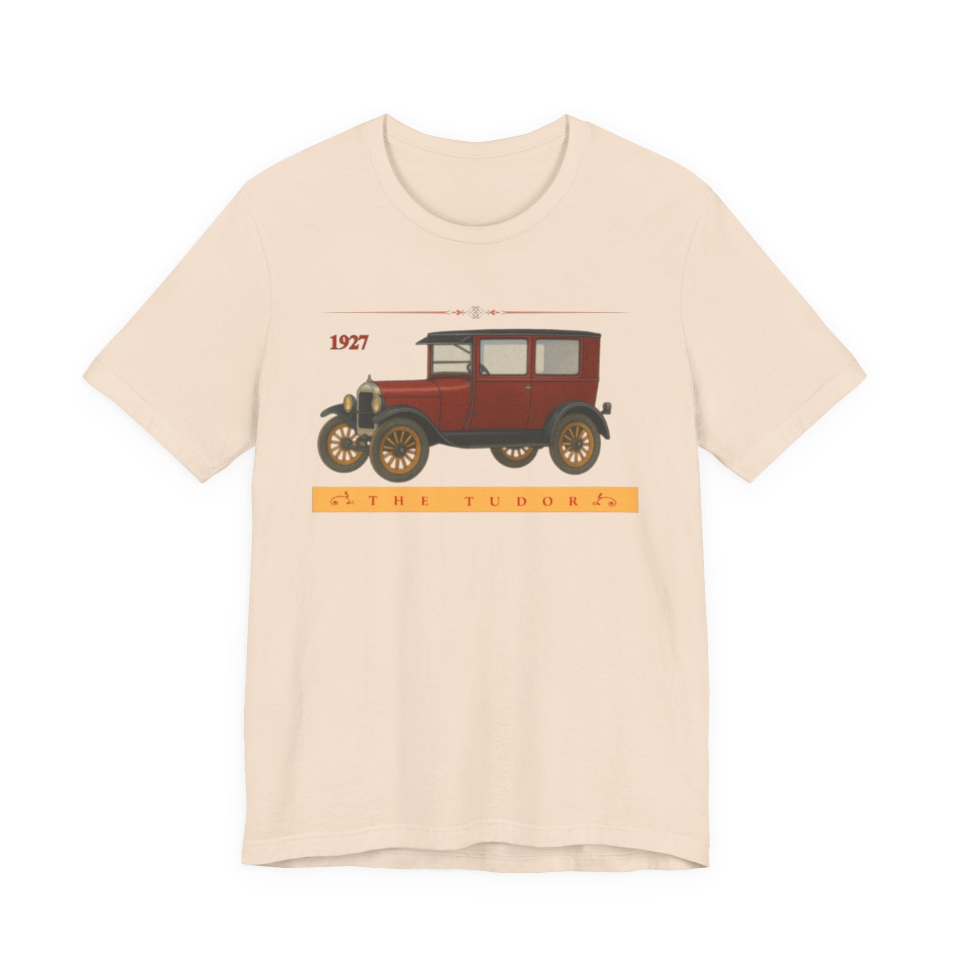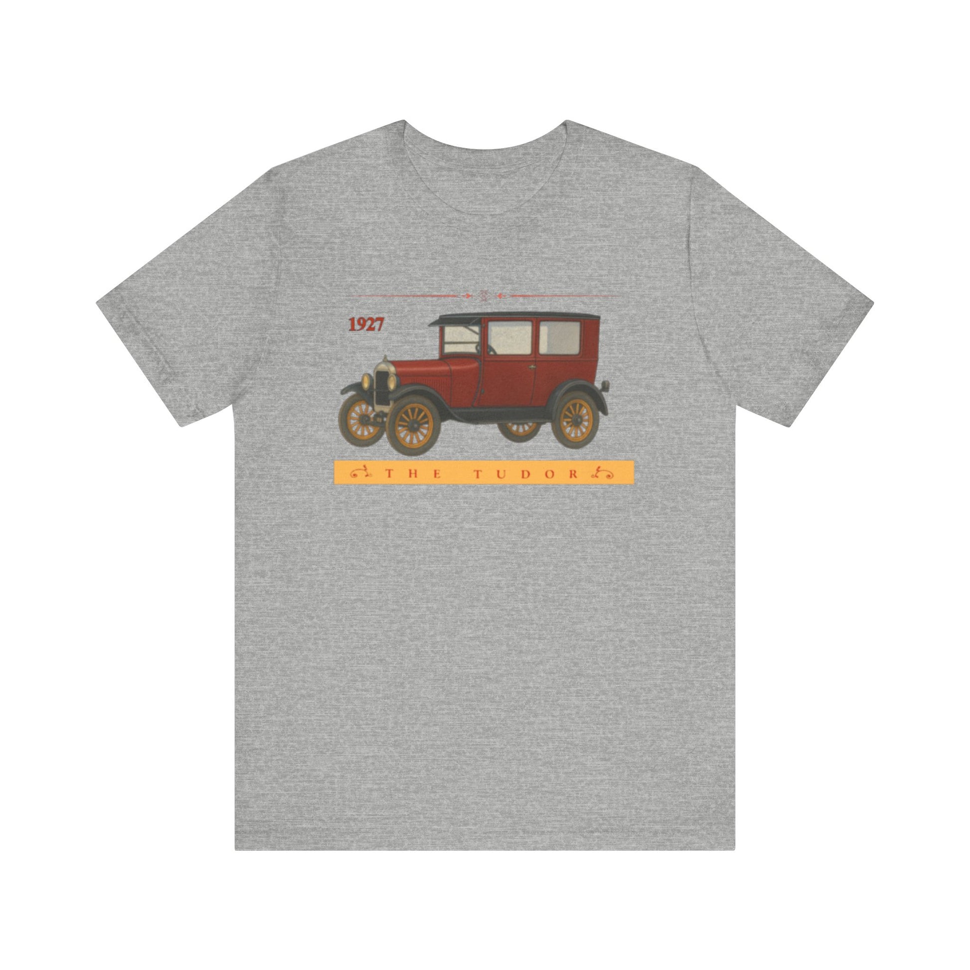 This lightweight, soft-cotton tee carries a quiet love for vintage motoring. A muted, hand-illustrated 1927 sedan sits centered on the chest, its warm maroon and ochre tones giving the shirt an old-photograph warmth. The crew neckline and retail fit make it easy to layer under a jacket or wear solo while running errands, heading to a car meet, or wandering a weekend flea market. Breathable Airlume combed cotton keeps the fabric feeling clean and cool, while the tear-away label and reinforced shoulder tape keep comfort front and center. It’s a simple wardrobe piece that speaks to someone who enjoys mechanical history, slow drives, and thoughtful, understated style.