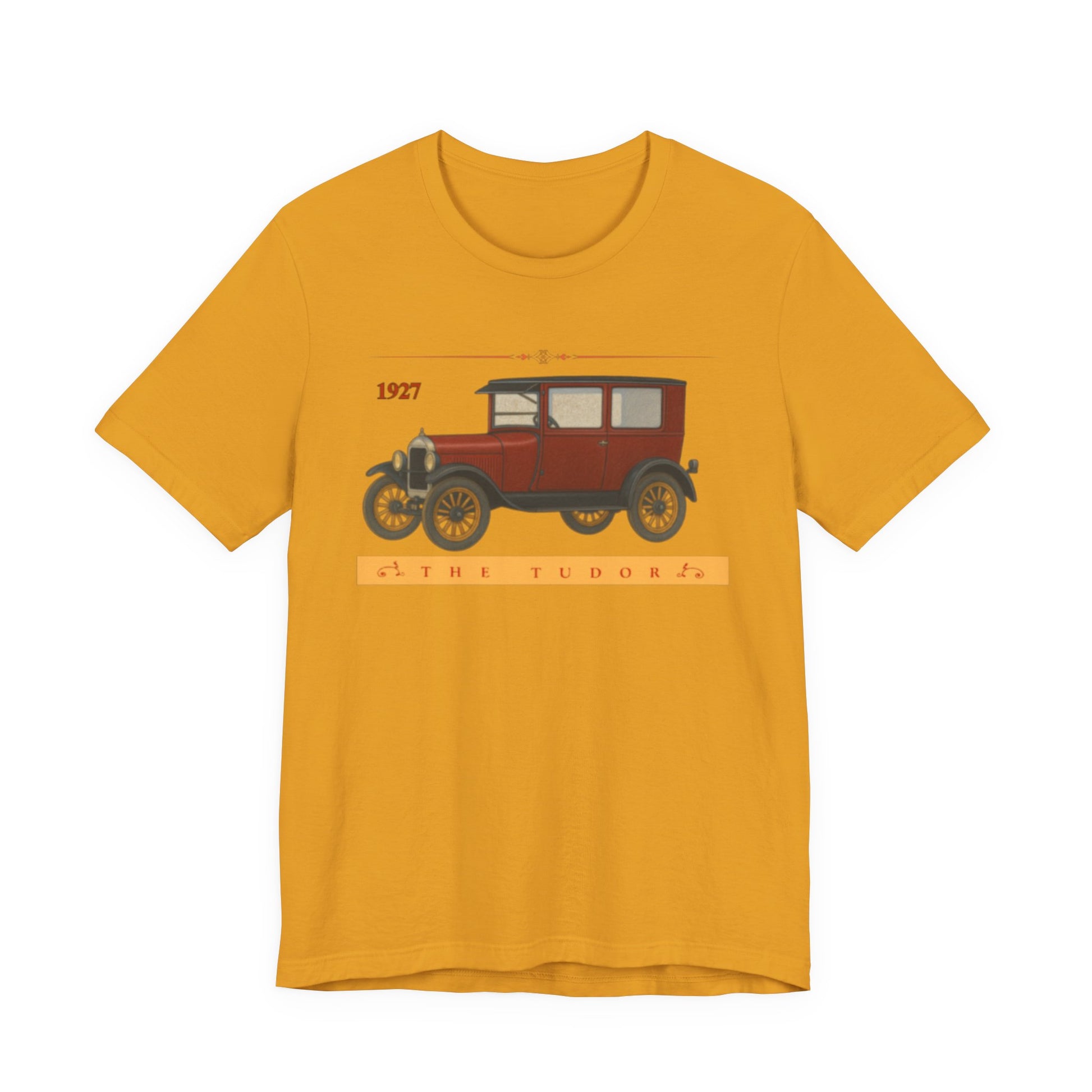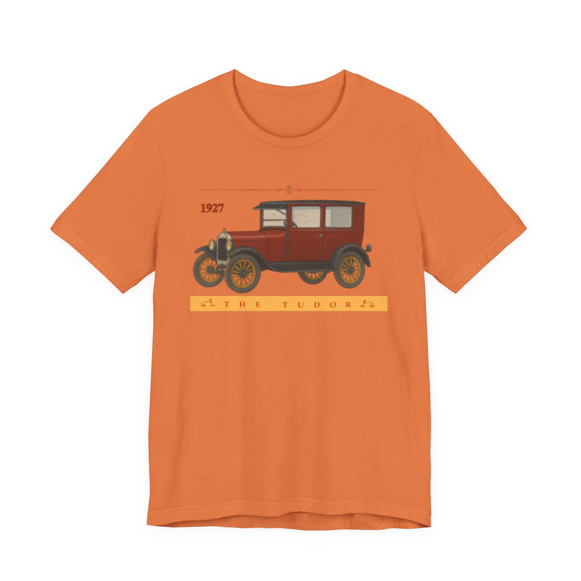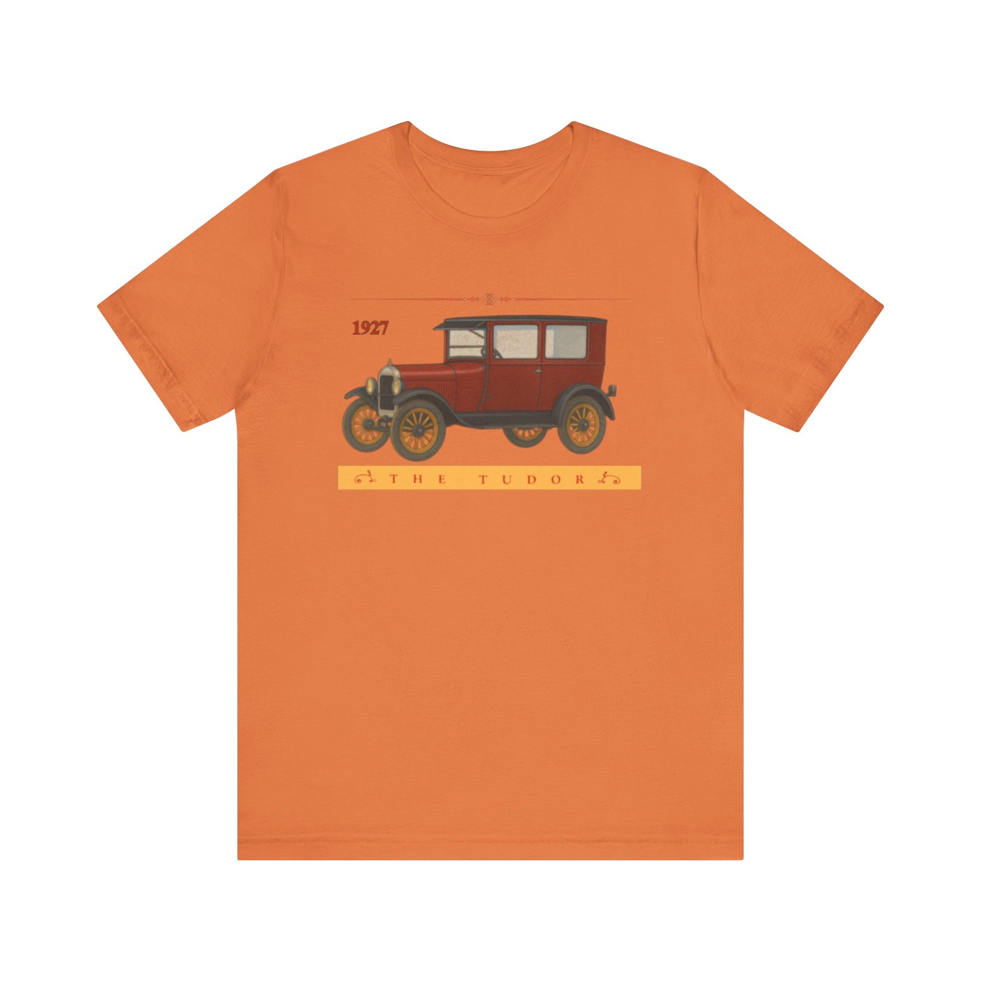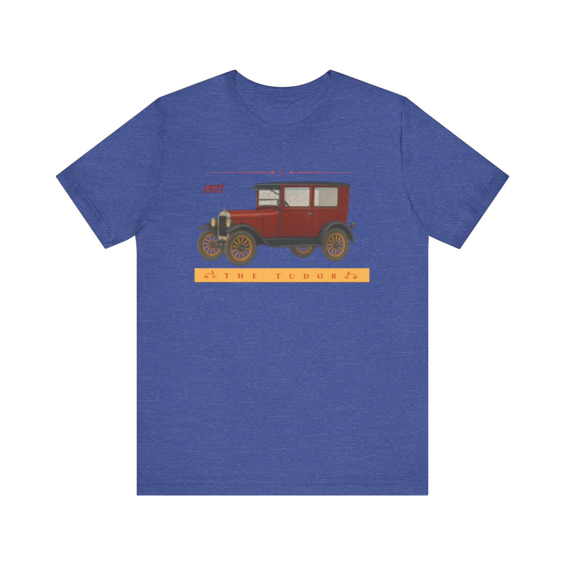This lightweight, soft-cotton tee carries a quiet love for vintage motoring. A muted, hand-illustrated 1927 sedan sits centered on the chest, its warm maroon and ochre tones giving the shirt an old-photograph warmth. The crew neckline and retail fit make it easy to layer under a jacket or wear solo while running errands, heading to a car meet, or wandering a weekend flea market. Breathable Airlume combed cotton keeps the fabric feeling clean and cool, while the tear-away label and reinforced shoulder tape keep comfort front and center. It’s a simple wardrobe piece that speaks to someone who enjoys mechanical history, slow drives, and thoughtful, understated style.