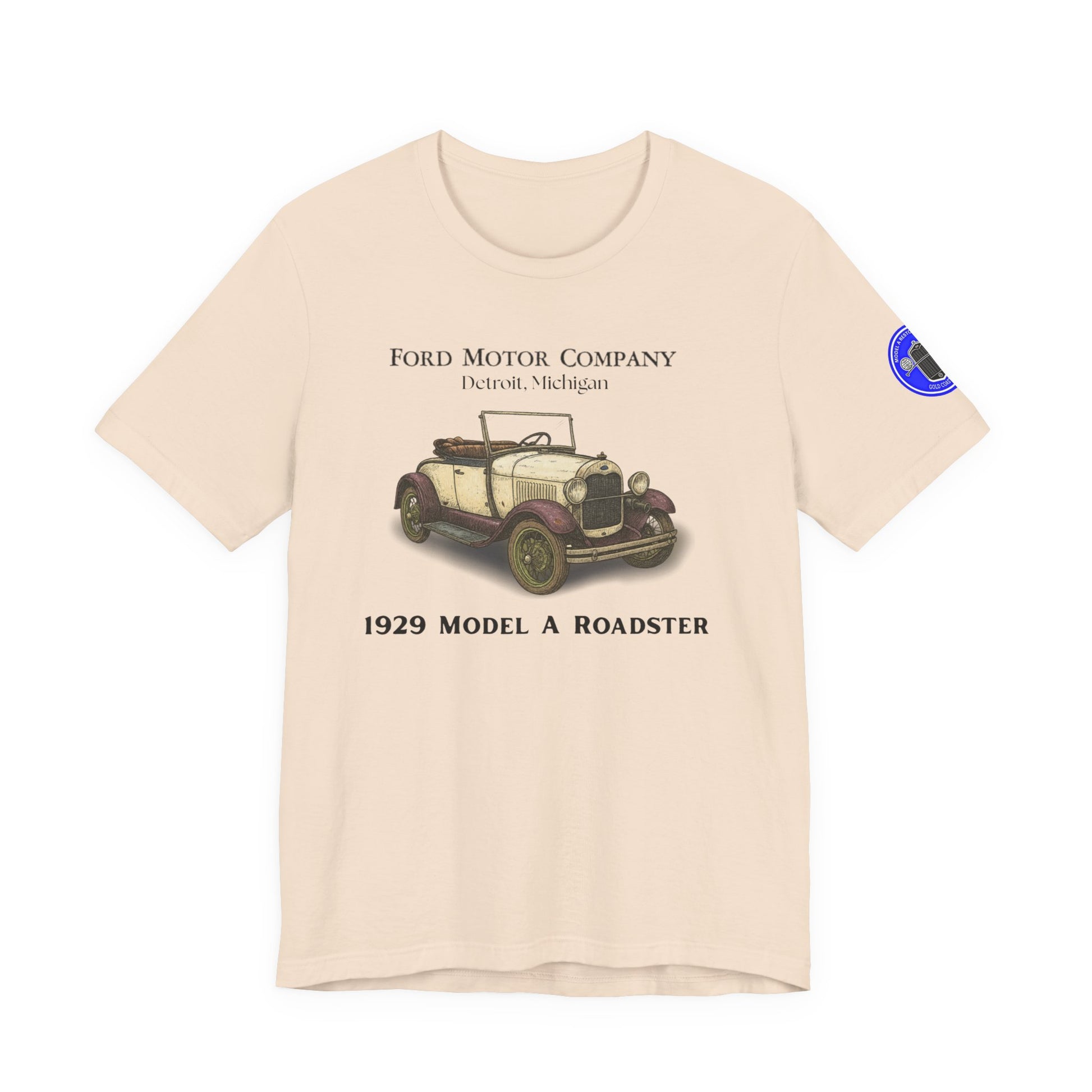 1929 Model A Ford Roadster T-Shirt – Gold Coast Logo on sleeve