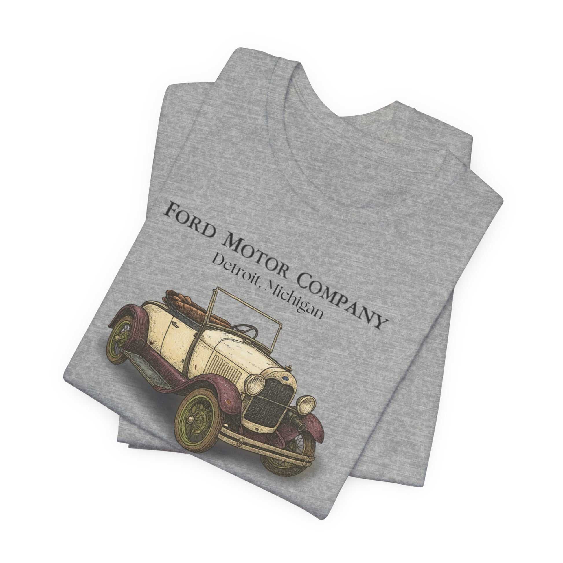 A crisp, lightweight tee that carries the quiet joy of open roads and vintage engines. The front features a hand-rendered 1929 Model A Roadster illustration with subtle distressed tones and classic typography above and below the image, giving the shirt the feel of a well-loved garage poster. A small circular emblem sits on the sleeve for an extra touch of club-style authenticity. Wear it on weekend drives, to car meets, or simply when you want a soft layer that speaks to automotive history and slow, deliberate craftsmanship.