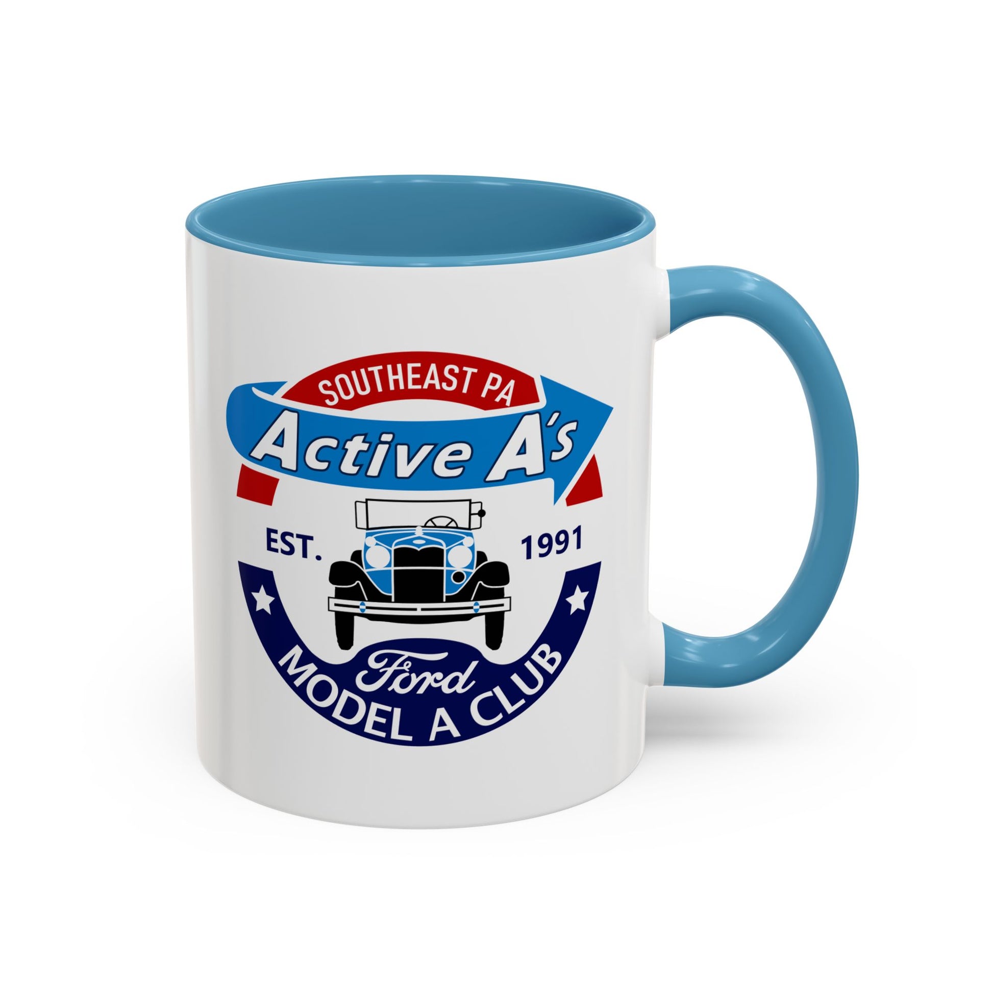 Ford Model A Club Coffee Mug — "Active A's" Southeast PA Vintage Car Design (11/15 oz)