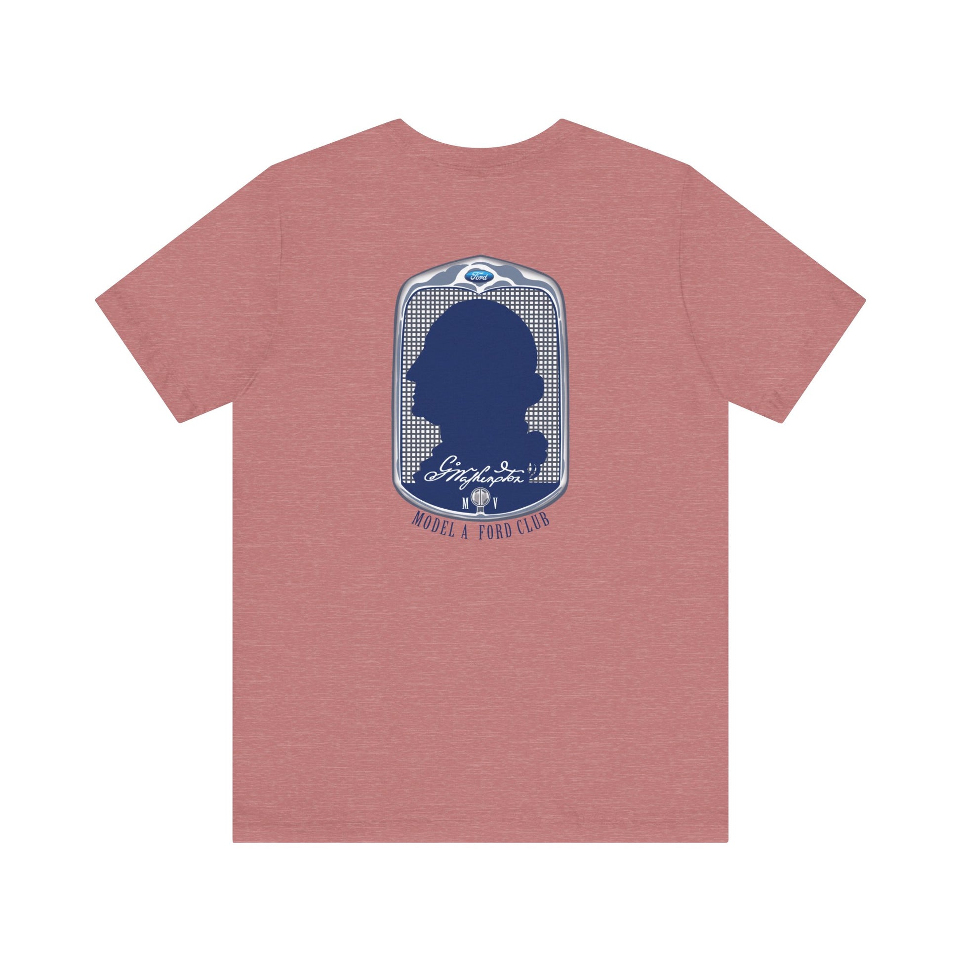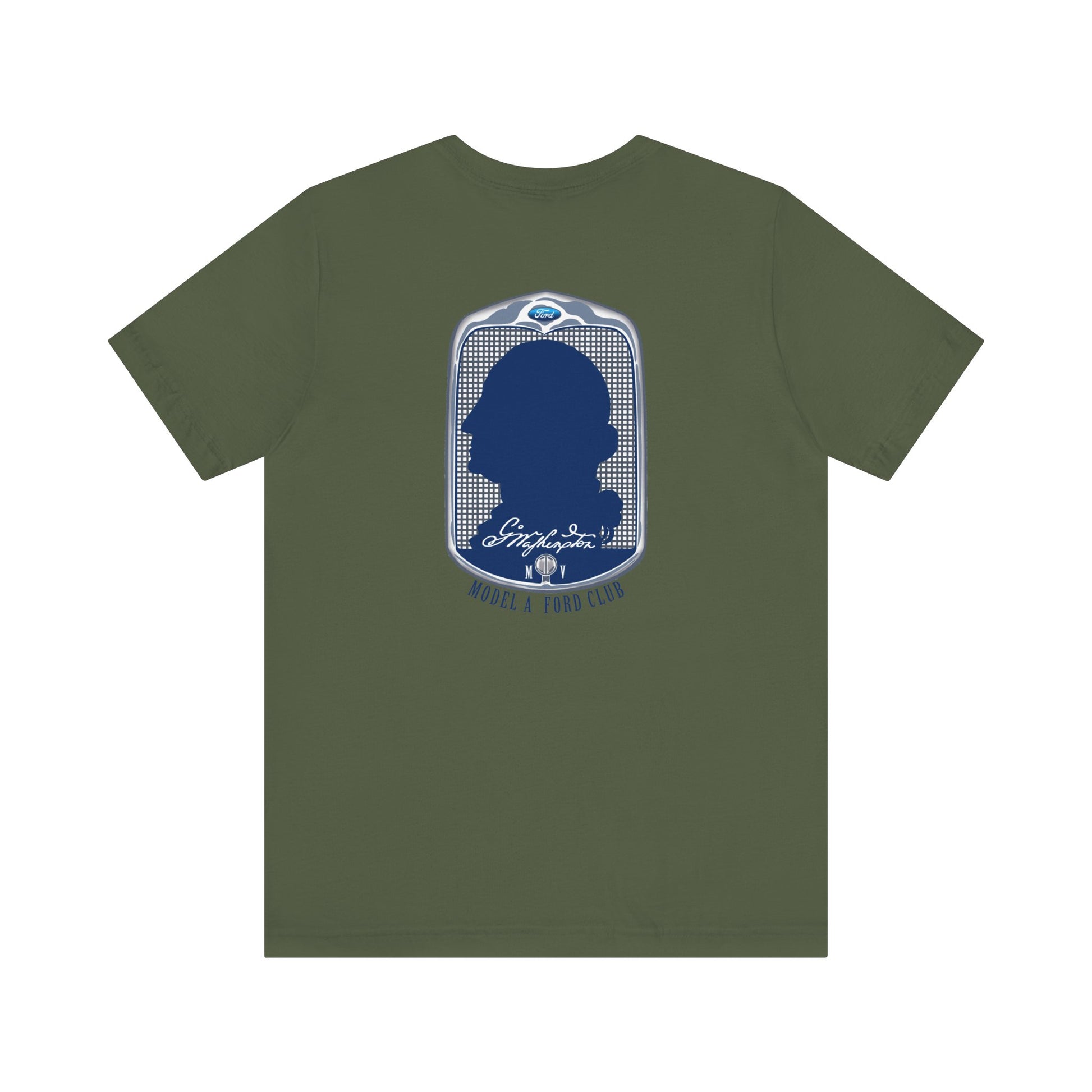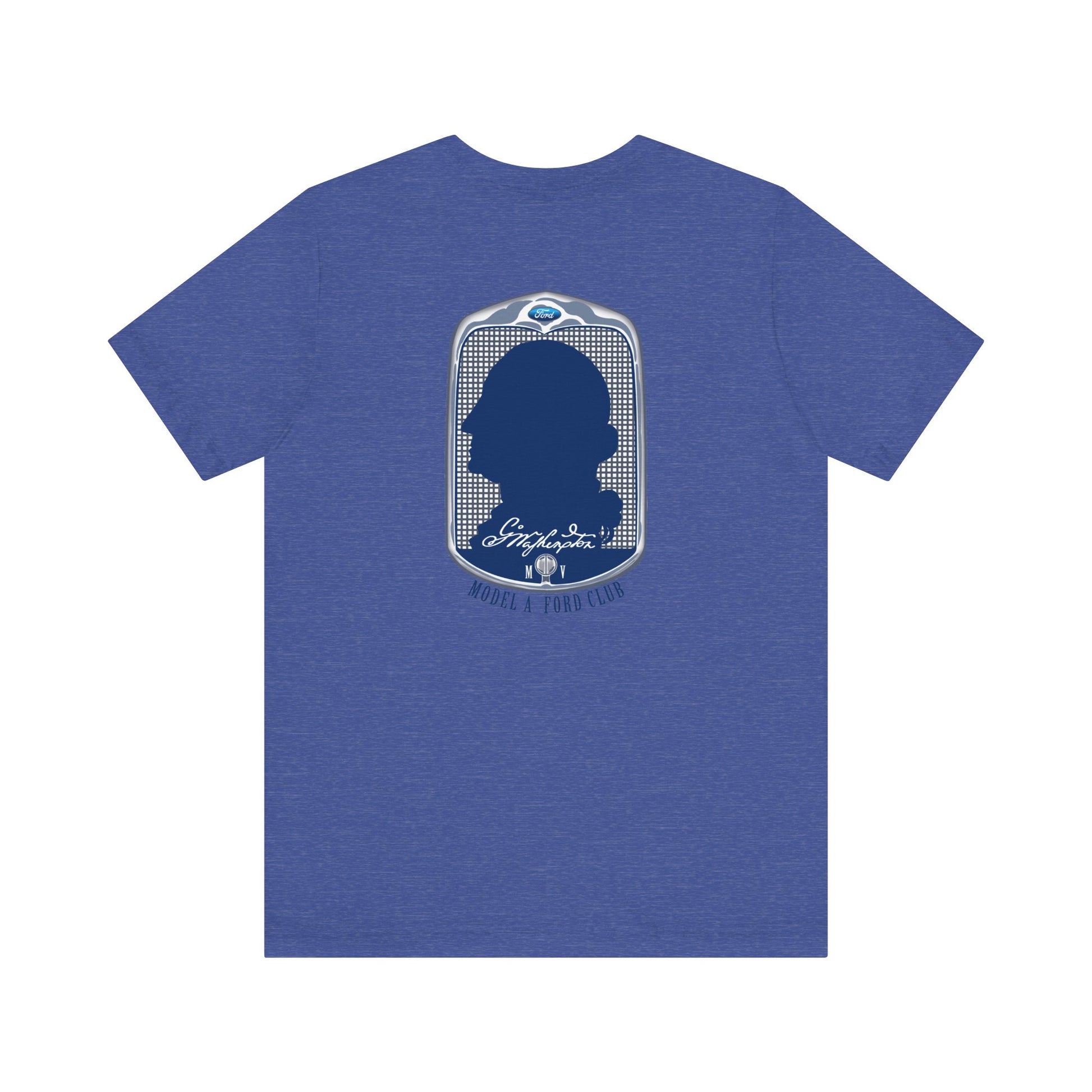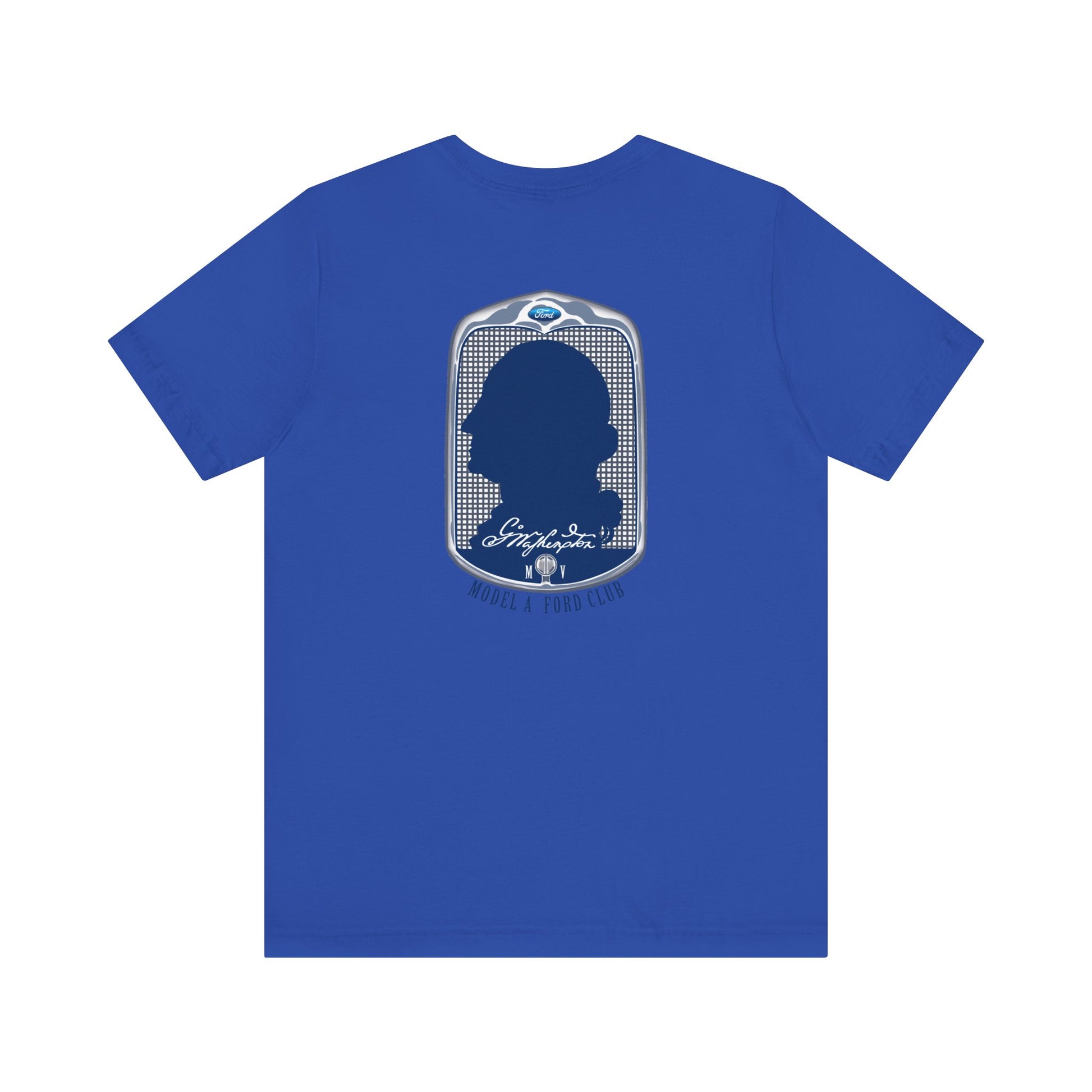 George Washington Model A Ford Club (front and back blue logo) Unisex Jersey Short Sleeve Tee