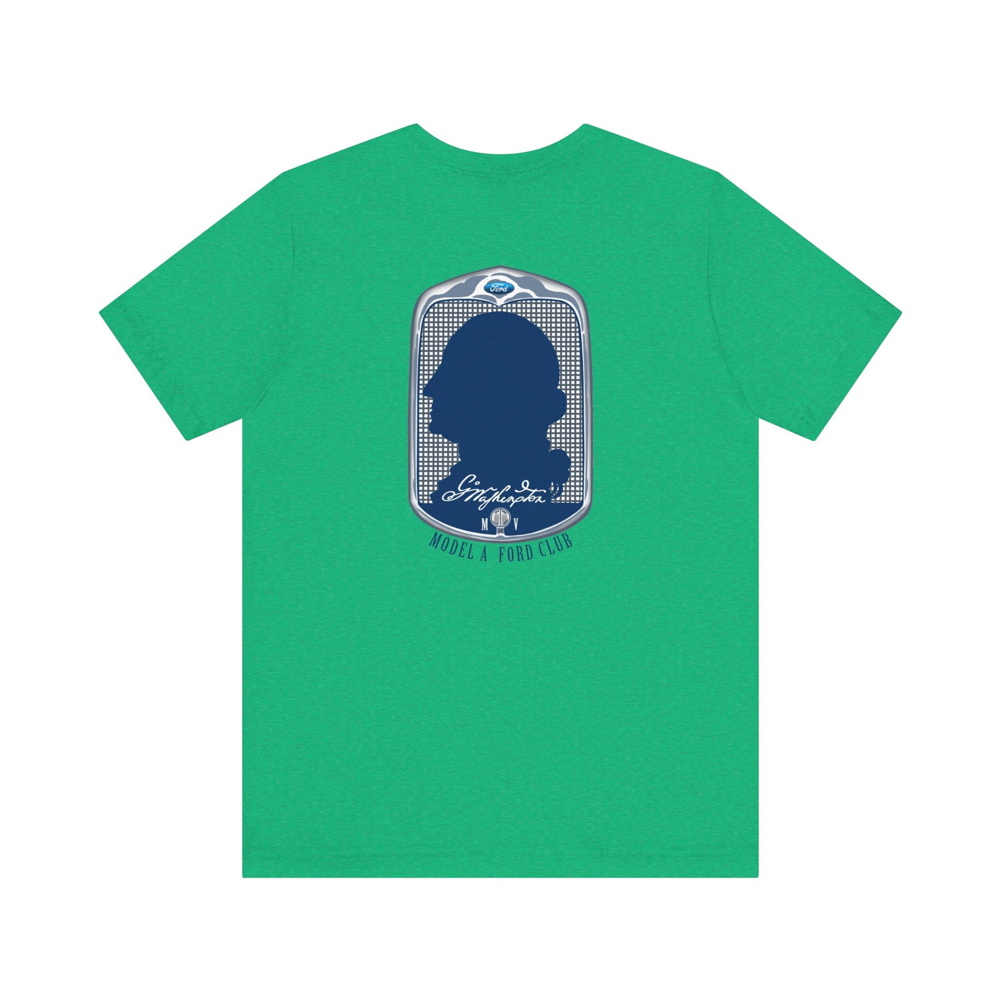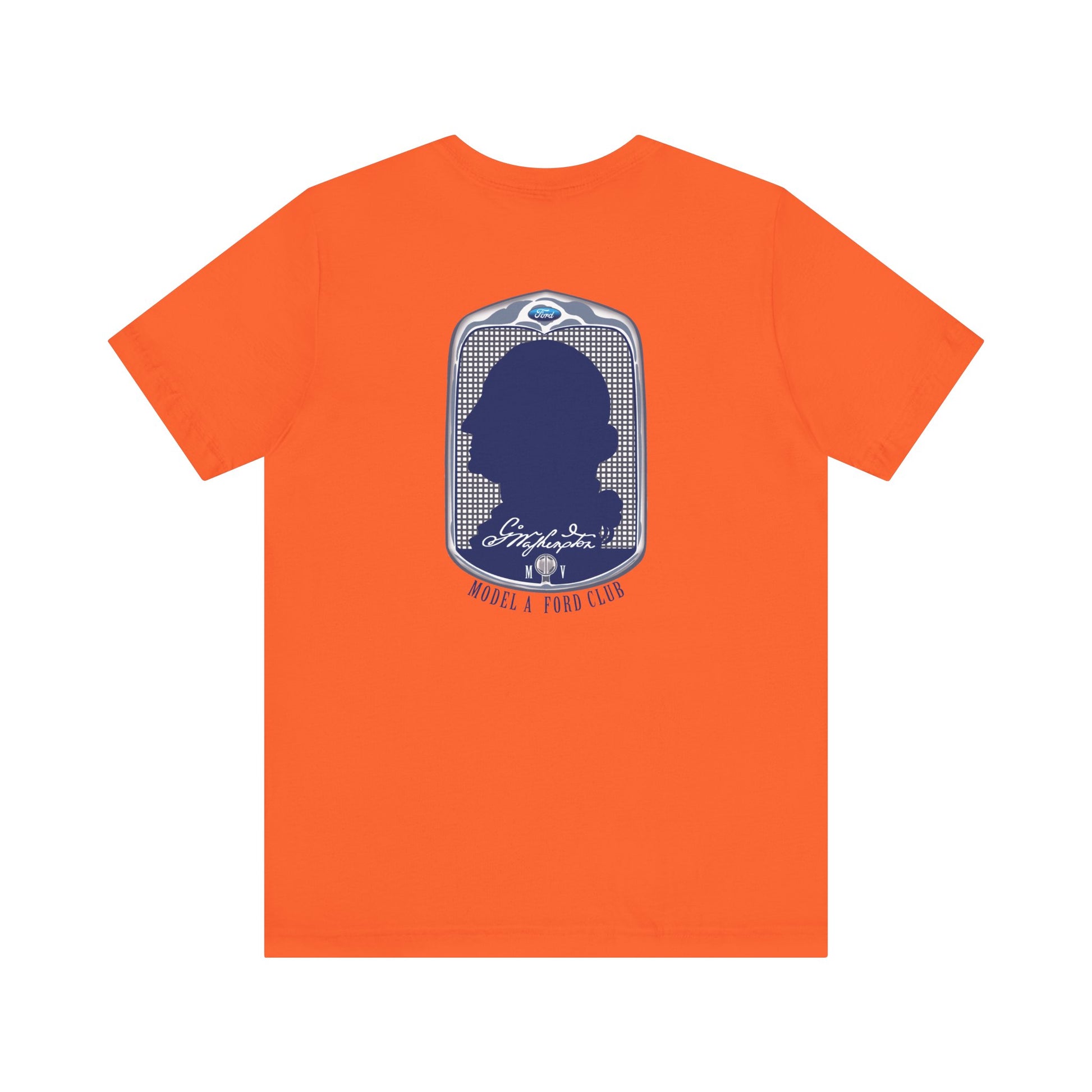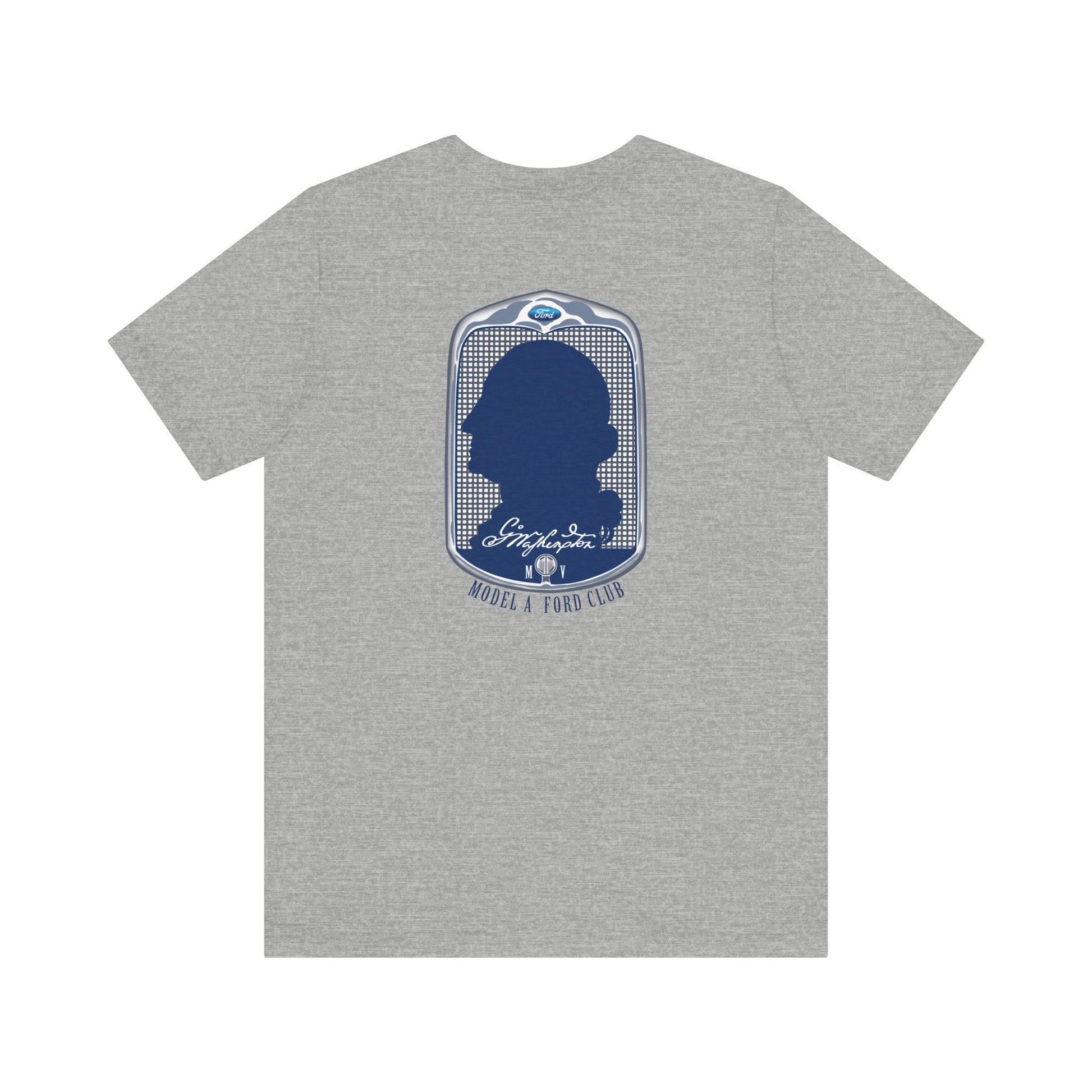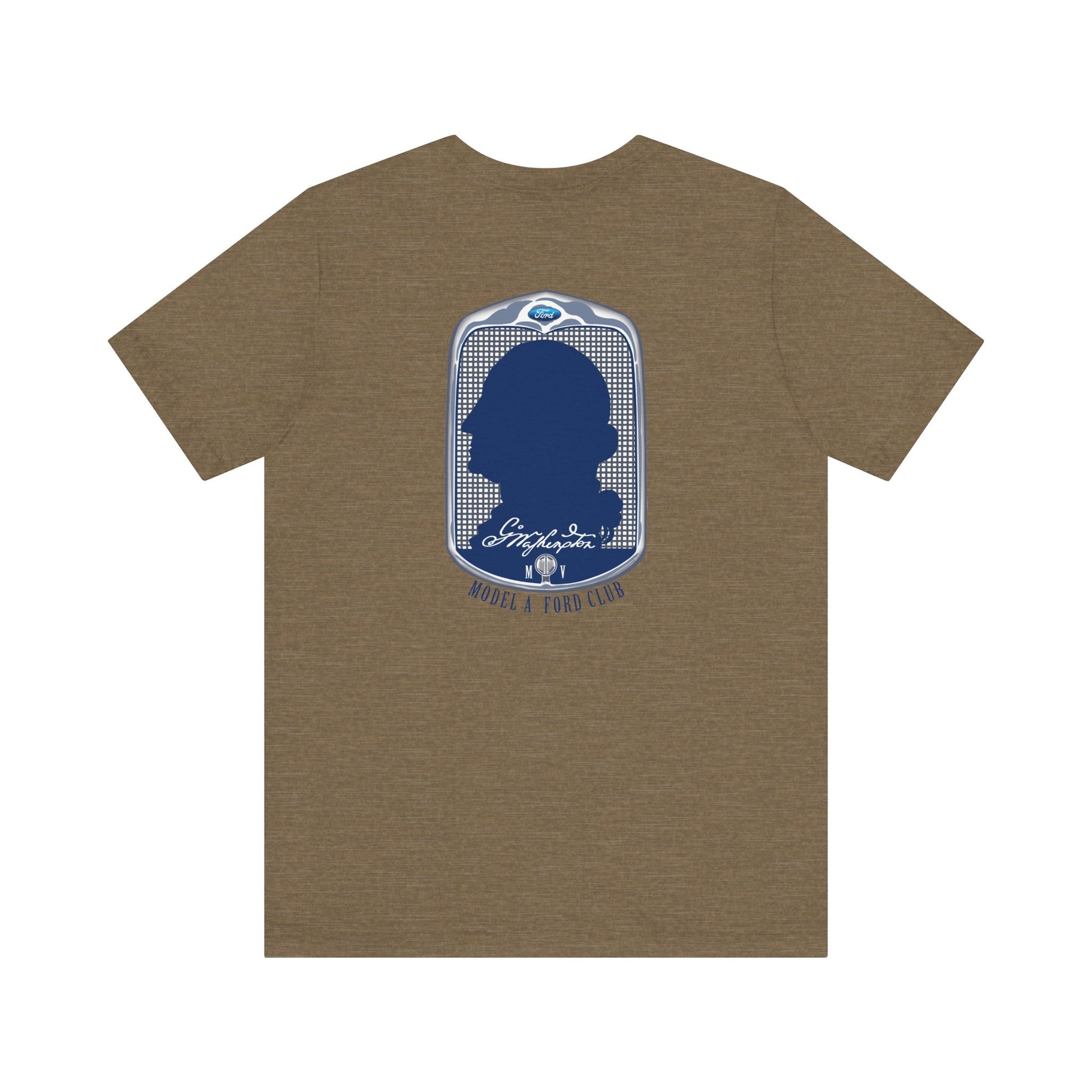 George Washington Model A Ford Club (front and back blue logo) Unisex Jersey Short Sleeve Tee