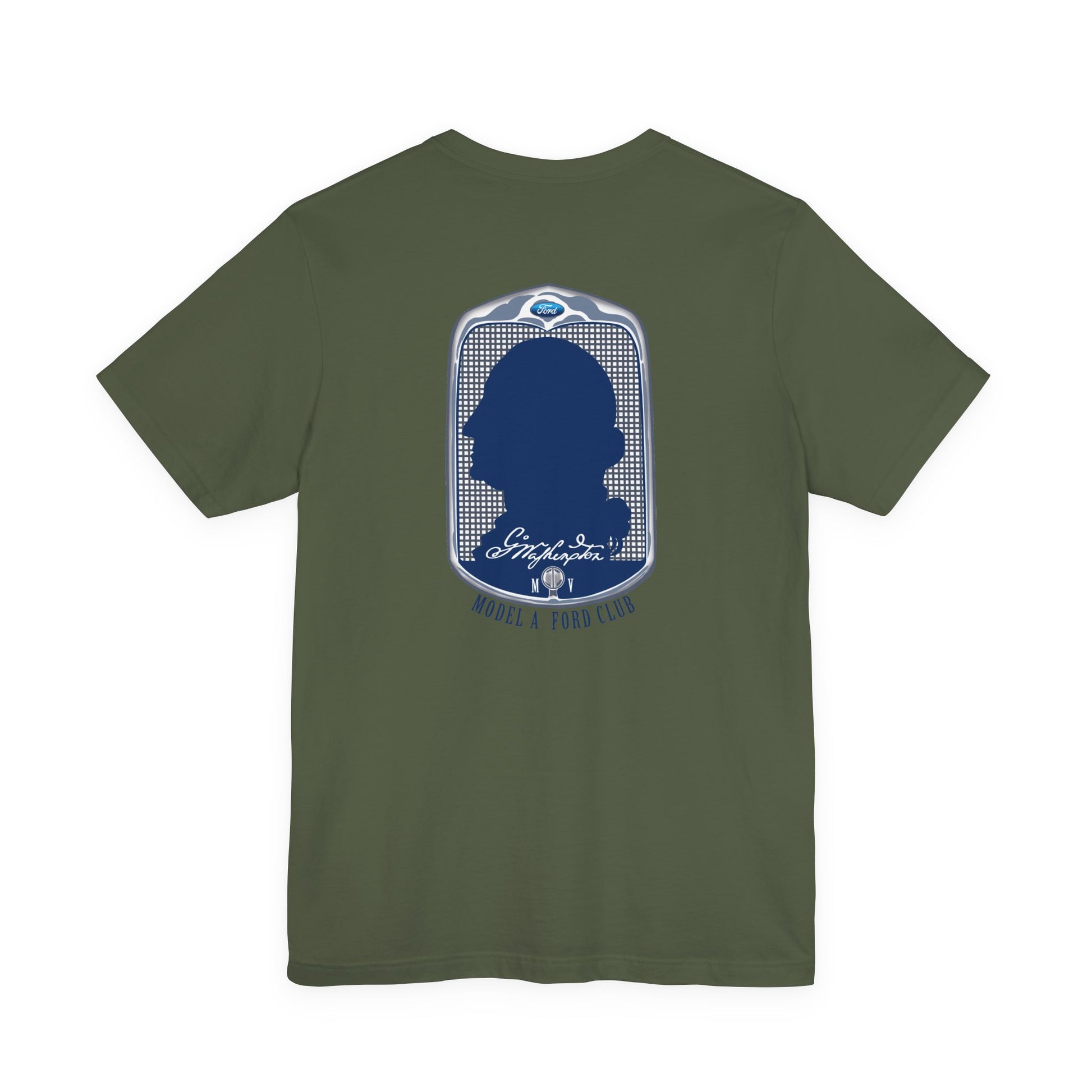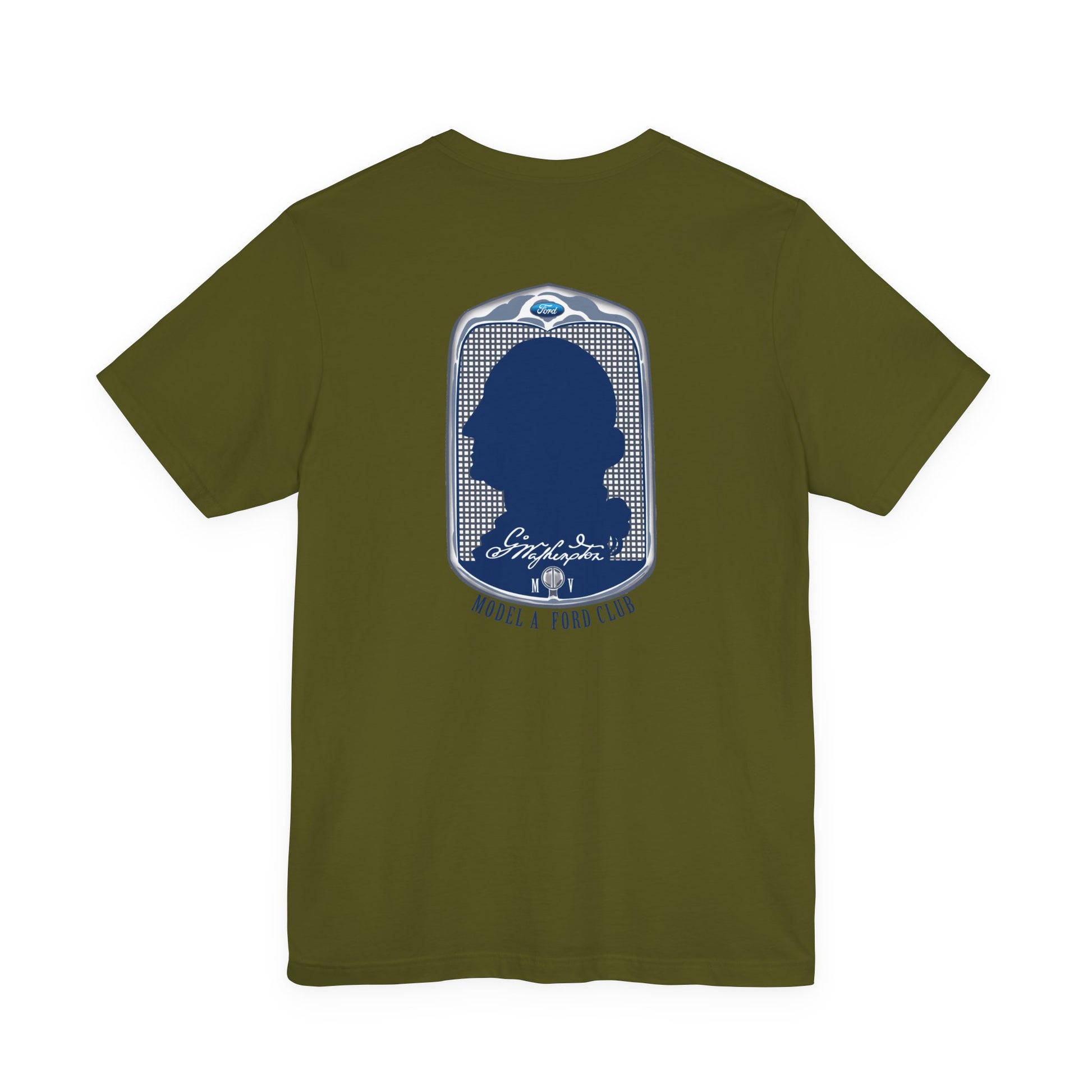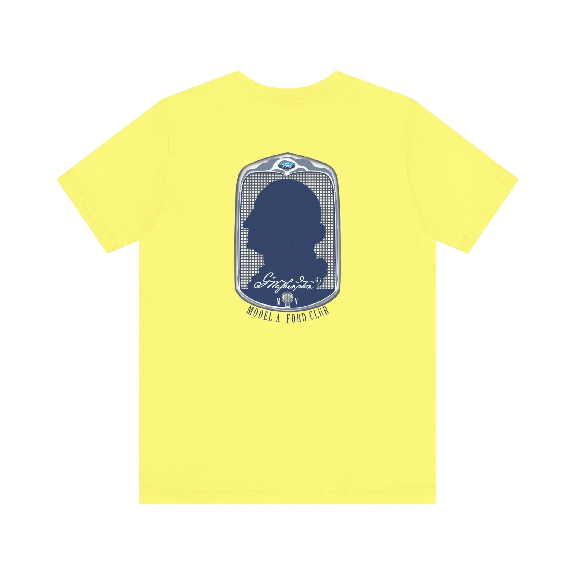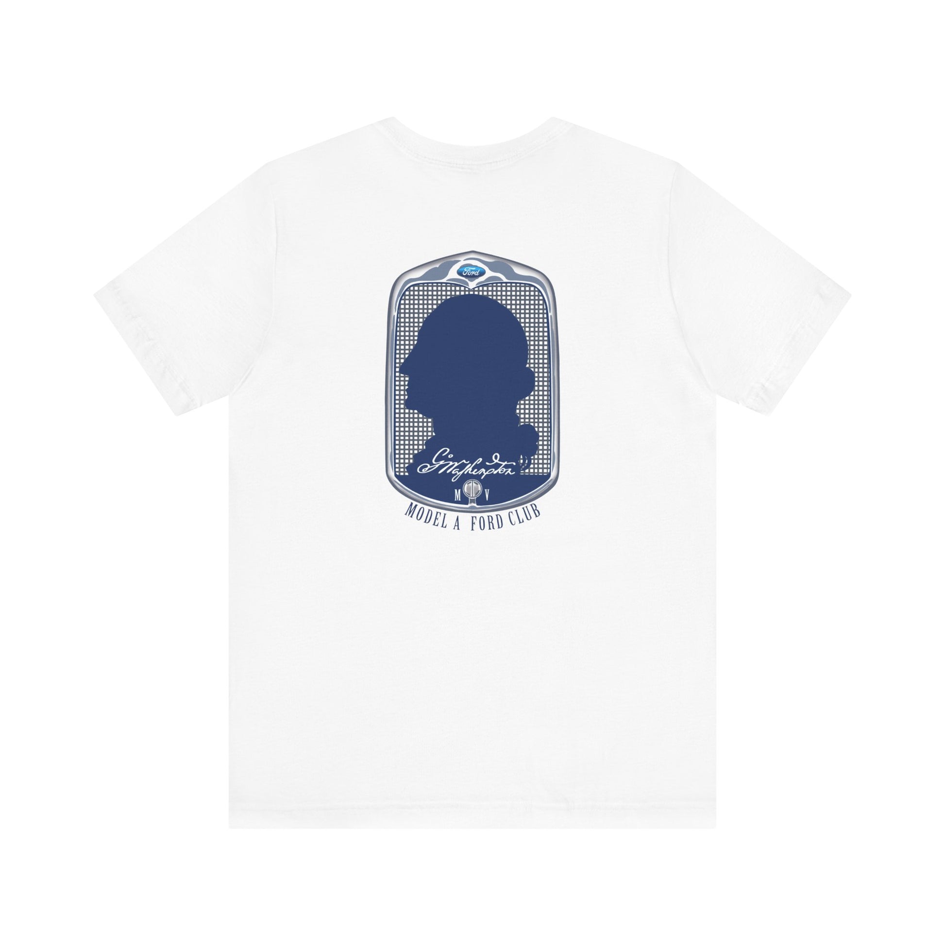 George Washington Model A Ford Club (front and back blue logo) Unisex Jersey Short Sleeve Tee